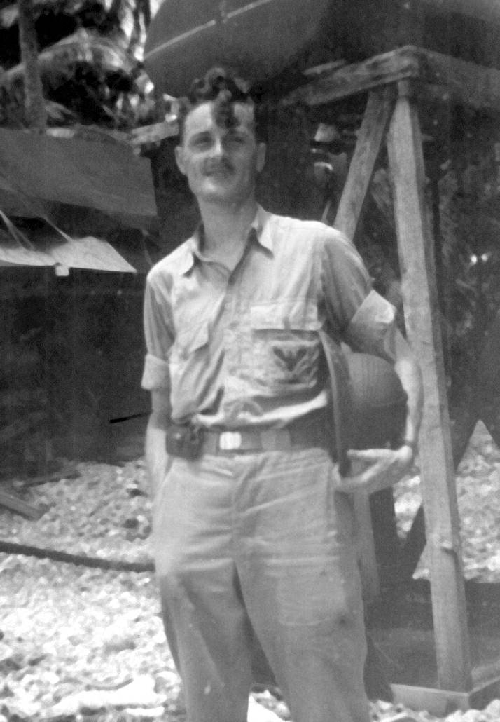 After that contract dried up, he found employment with Philco Corporation of Philadelphia PA, as a field technical representative or ”TechReps” as they were known, for Philco in the Pacific theater, one of the early manufacturers of radar equipment.  These field engineers were contracted to the U.S.N. Bureau of Aeronautics.  As a civilian operating in the war zone, he wore a khaki uniform with TechRep, U.S.N., and A.C.G. insignia.  He installed many APS-4 radars and other radio equipment in aircraft during his stint with Marine aviation squadron VMSB-331 as it hopped across the Pacific in the last year of the war, along with other tasks such as inspecting ship installations and their spare parts inventories.  He was on islands such as Kwajalein, Eniwetok and Majuro in the Gilbert and Marshall Islands groups.