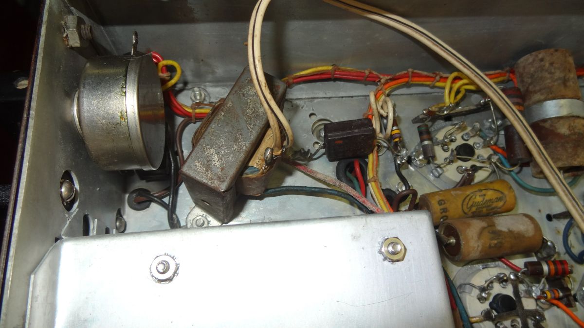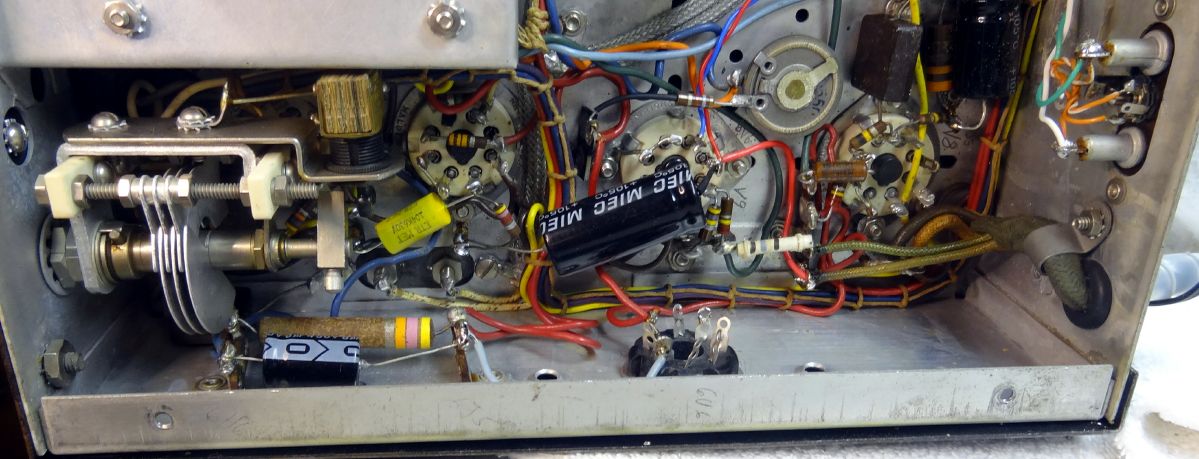 Just behind the front panel RF gain pot a prior mod place the audio output transformer. This has been relocated in the restoration.