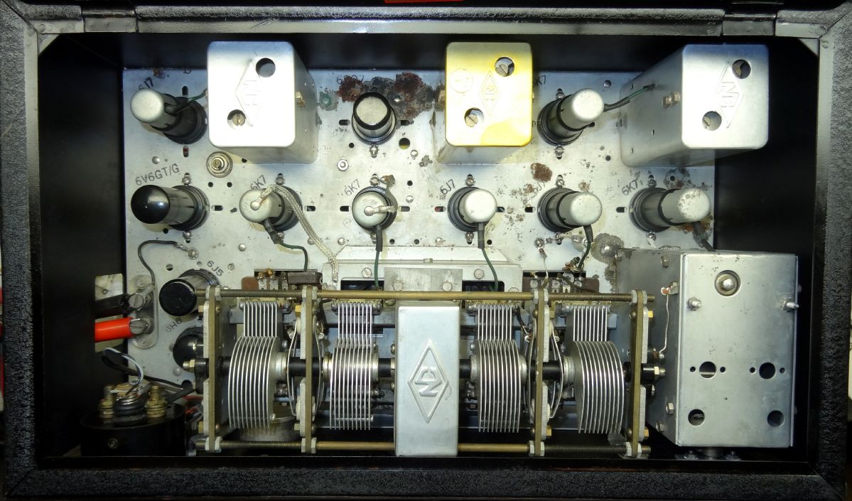 I was very lucky to have a National HRO-5TA1 offered to me in late 2018. It had been previously owned by a non-ham professional who apparently used it to SWL. He had passed away several years before and his wife just wanted to get rid of it. It had been fairly well taken care of but had signs of some rodent infestation. Fortunately other than some (edible) nuts stored in the radio and some relatively minor urine rust it was in reasonable shape. It came with a complete set of nine plug-in coils covering 50KHz to 30 MHz.