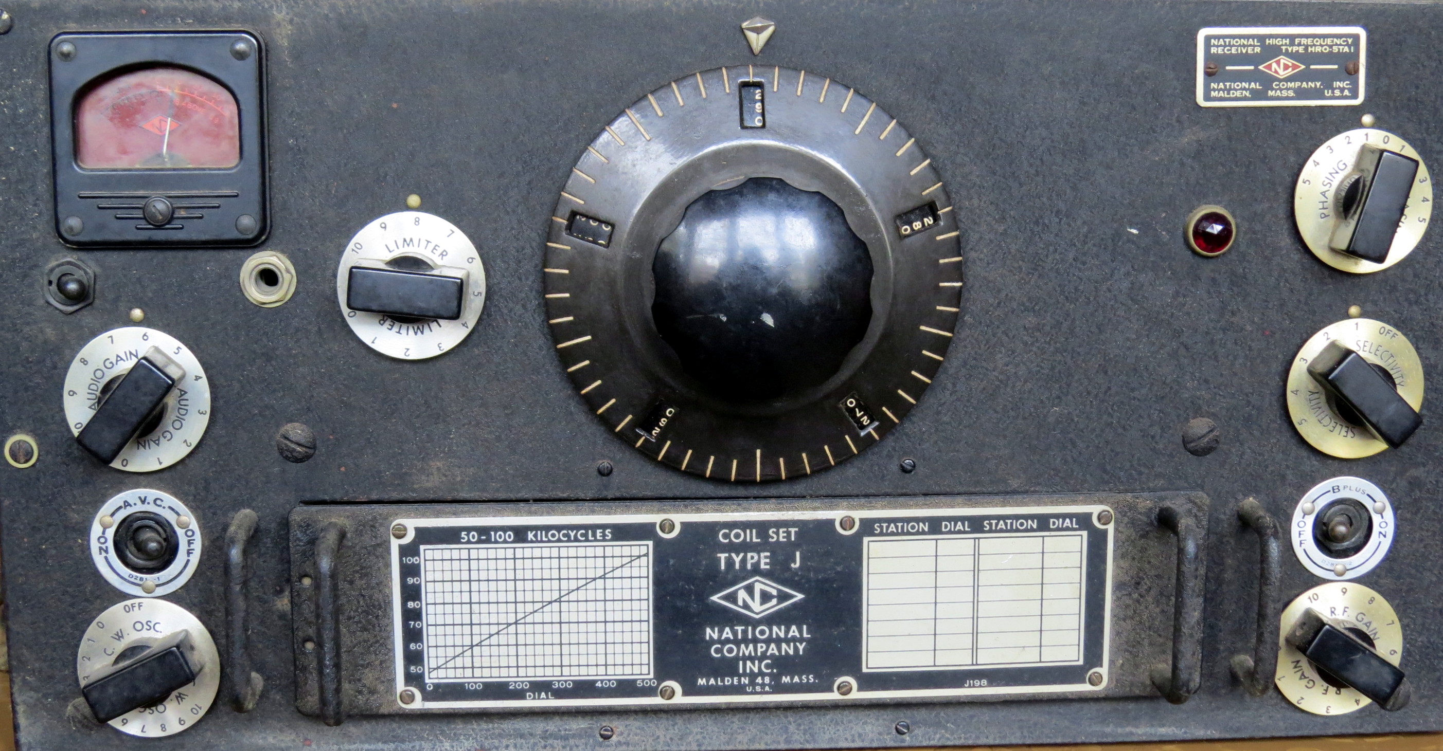 In 1935 National introduced their top-of-the-line HRO receiver. This radio included two RF stages and a crystal filter. The distinctive dial allowed KC (kHz) resetability and was a National trademark into the 1960s. With few changes other than to keep up with changing tube technology, this same basic design survived for over 20 years.